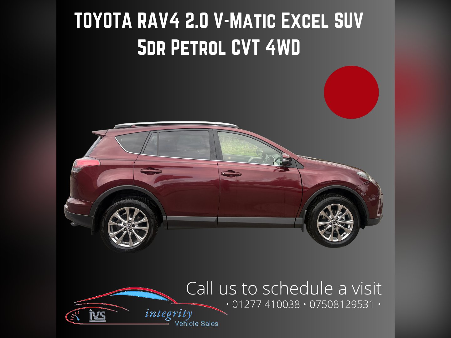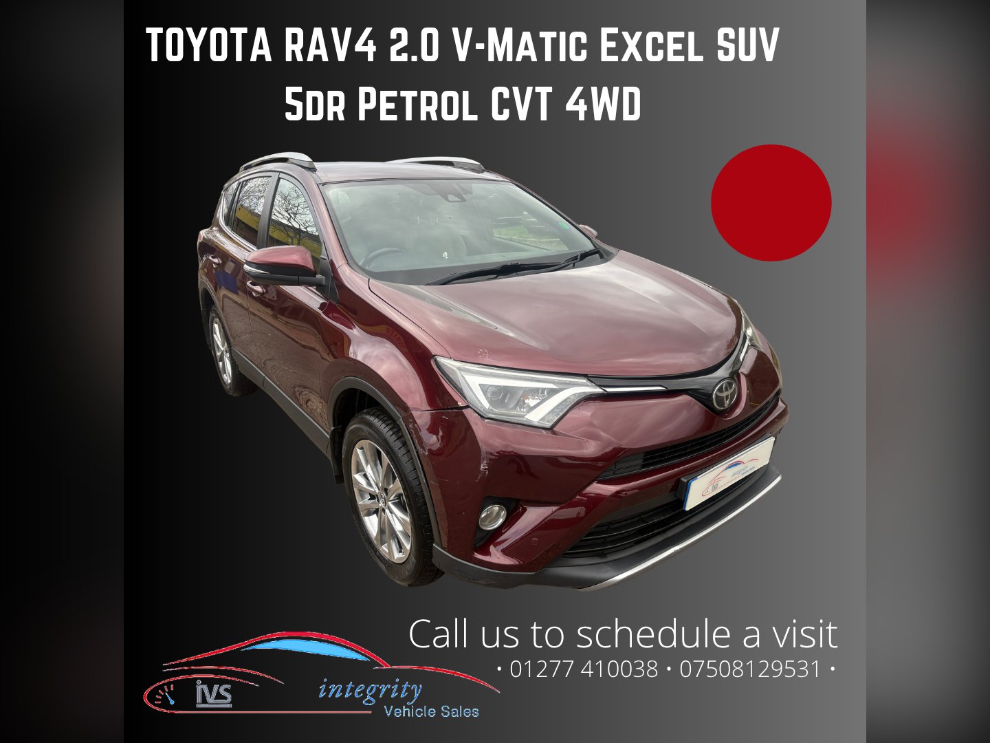 This 2016 Toyota RAV4 2.0 V-Matic Excel SUV has only 94567 miles on the clock and runs on petrol. With an MOT that expires on 26/01/2026, this 5-door SUV comfortably seats 5 people. It is ULEZ compliant, making it suitable for driving in low emissions zones. Equipped with safety sense and navigation, this Euro 6 standard 4WD vehicle delivers 151 ps, providing a powerful and reliable driving experience. Ideal for families or those looking for a spacious and capable vehicle, this Toyota RAV4 is a top choice for those in need of an SUV with both comfort and performance. NOTE-THIS VEHICLE HAS BEEN CLASSIFIED BY INSURANCE AS CATEGORY N.